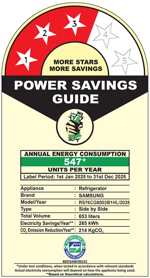 - energy rating : 3 star energy efficiency | annual energy consumption: 547 units per year