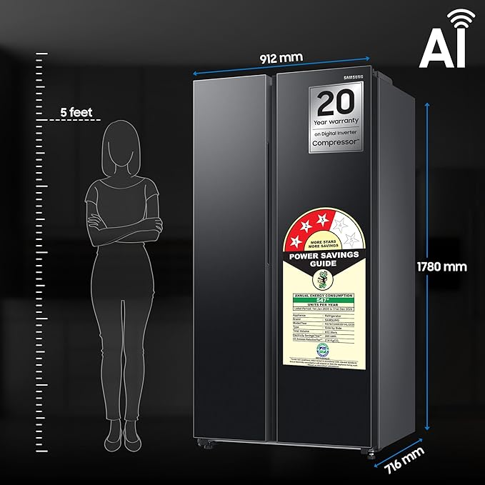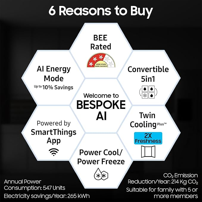 - side by side frost-free refrigerators: bespoke refrigerator with ai. with convertible 5in1 mode best optimize your storage needs : |normal mode|extra fridge mode|seasonal mode|vacation mode|home alone mode