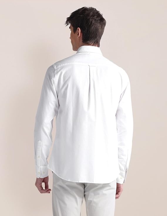 Give your casual shirt repertoire a new look with this curved hemline shirt, featuring a tailored fit.