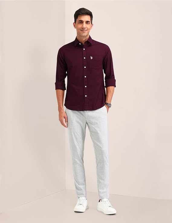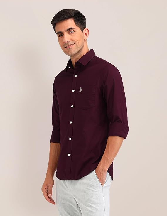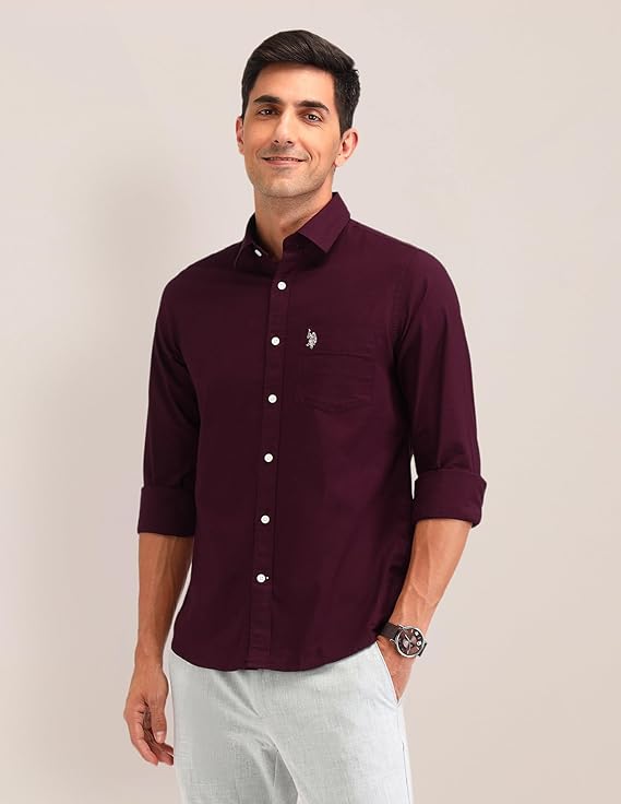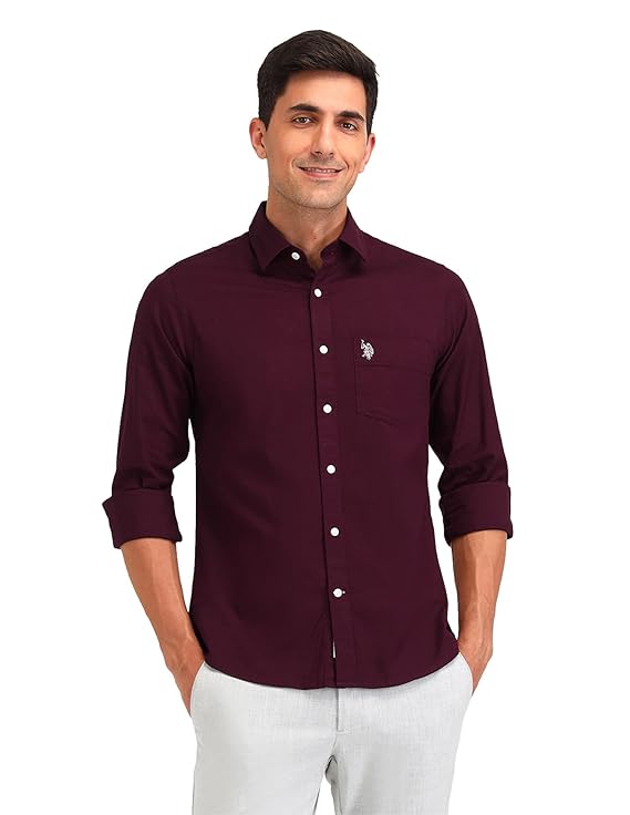 Durable stitching and high-quality fabric ensure longevity, making this shirt a reliable addition to your wardrobe. Whether styled under a blazer, paired with jeans, or worn solo, the U.S. POLO ASSN. Red Solid Cotton Shirt is a confident choice for men who value effortless style and comfort.